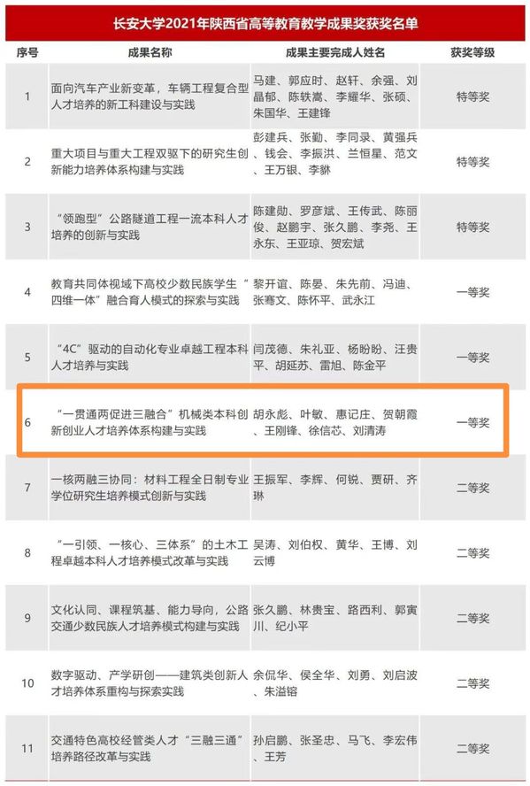 陕西省高速公路施工机械重点实验室1项成果荣获2021年陕西省高等教育教学成果奖一等奖