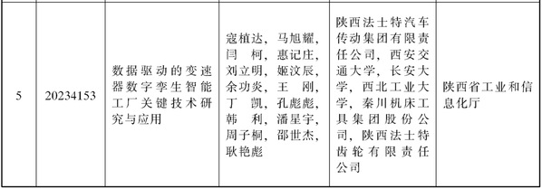 近日,陕西省人民政府发布《陕西省人民政府关于2023年度陕西省科学技术奖励的决定》(陕政字[2024]34号)。我院惠记庄教授、丁凯教授参与完成的“数据驱动的变速器数字孪生智能工厂关键技术研究与应用”成果荣获陕西省科学技术进步奖一等奖。该成果由陕西法士特汽车传动集团有限责任公司牵头,联合西安交通大学、长安大学、西北工业大学、秦川机床工具集团股份公司、陕西法士特齿轮有限责任公司共同完成。该成果攻克了高性能变速器工艺智能创成与优化、制造-测试全闭环智能制造装备系统、制造过程智能控制等重大技术难题,形成的智能制造解决方案在变速器产业链上下游得到了有效应用。